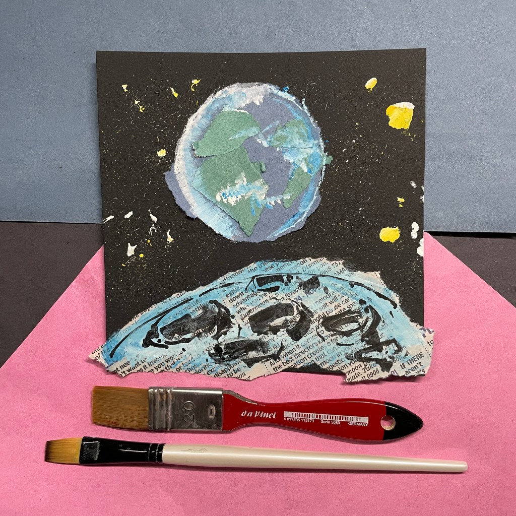 The celestial prompt was a good one for me to flex my artistic muscle on a space themed image. I love the NASA image of Earth pictured from the Moon.