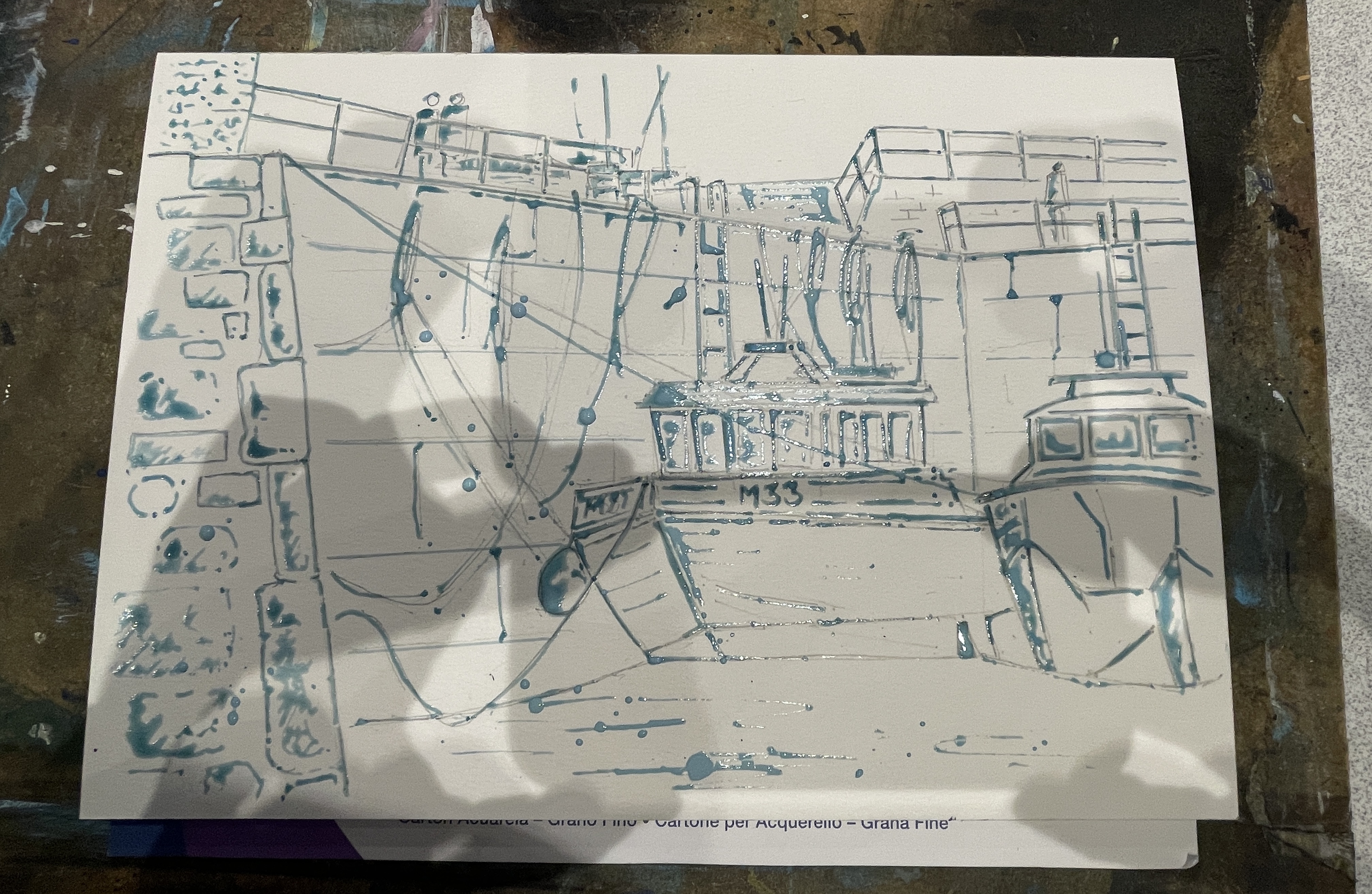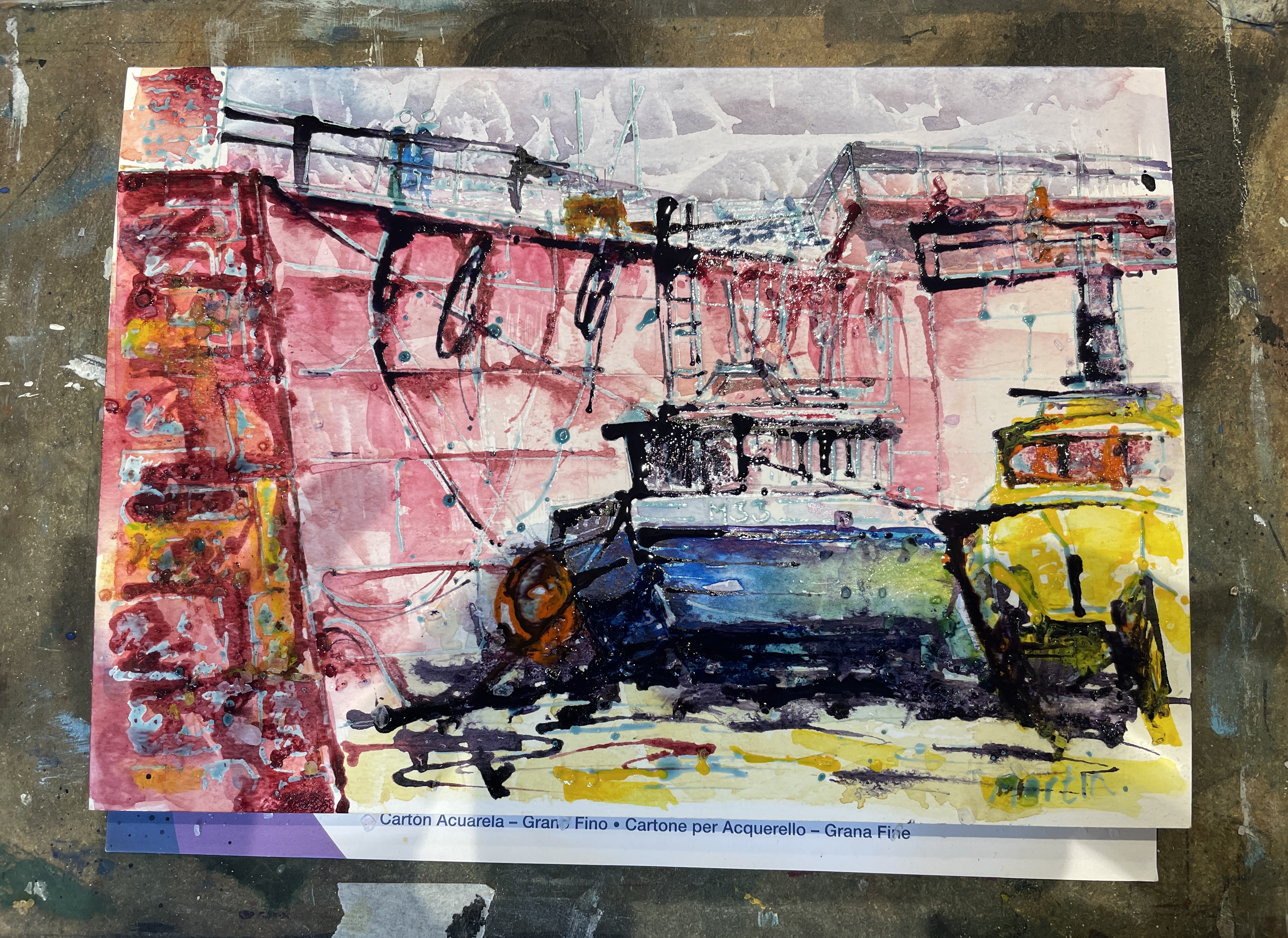 When the morning came I made some additions to the image as I wanted the blue boat to be the focal point of the picture and when I removed the masking fluid the emphasis on the boat had gone.
