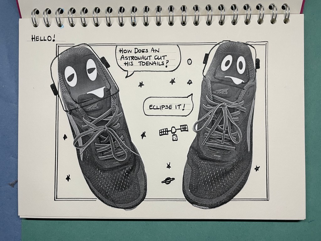 I’ve put eyes on my trainers. They are dirty and muddy. I can imagine them wanting a bath to get clean!